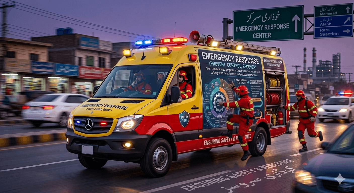 اصطلاح “ایمرجنسی ریسپانس” سے مراد وہ منظم اور مربوط اقدامات ہیں جو غیر متوقع واقعات کے اثرات کو روکنے، قابو پانے اور بحالی کے لیے کیے جاتے ہیں، جو لوگوں کی جان، املاک یا ماحول کو نقصان پہنچا سکتے ہیں۔ اس میں سرگرمیوں کی وسیع رینج شامل ہوتی ہے، جو کسی واقعے کے دوران فوری ردعمل سے لے کر طویل مدتی بحالی اور عمل میں بہتری تک محیط ہوتی ہے۔ بنیادی طور پر، ایمرجنسی ریسپانس کا تعلق منصوبہ بندی، فوری کارروائی، اور مؤثر رابطے سے ہے۔ اس کا مطلب ہے کہ صنعتی ماحول میں ایمرجنسی حالات کو سنبھالنے کے لیے اہل عملہ، مناسب آلات، اور واضح طور پر طے شدہ طریقہ کار موجود ہوں۔