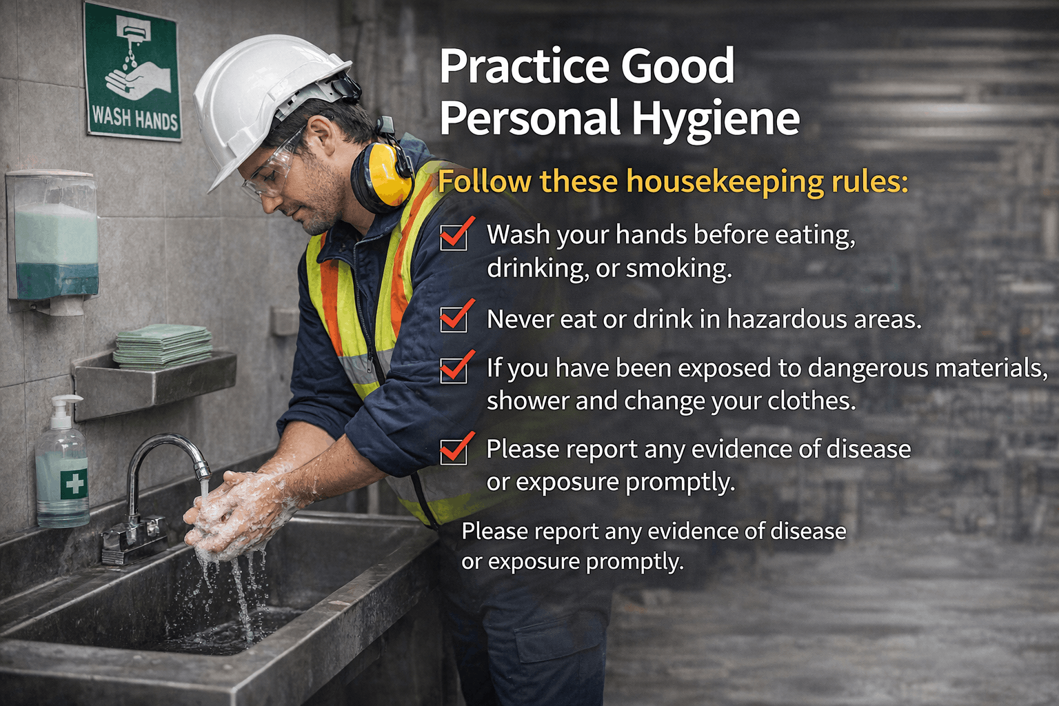 کام کی جگہ کے حفاظتی اصولوں (Workplace Safety Rules) کا بنیادی مقصد یہ ہے کہ کارکن اپنے کام بغیر کسی غیر ضروری خطرے کے انجام دے سکیں۔ صنعتی کاموں میں اکثر پیچیدہ طریقۂ کار شامل ہوتے ہیں، اور معمولی سی غلطی بھی بڑے حادثات کا سبب بن سکتی ہے۔